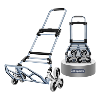 Carro para subir escaleras, camión de mano plegable portátil, carro de aluminio de 330 libras de capacidad con mango telescópico, 6 ruedas TPR